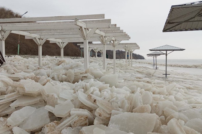 Ледяные глыбы разрушили пляж в Таганроге