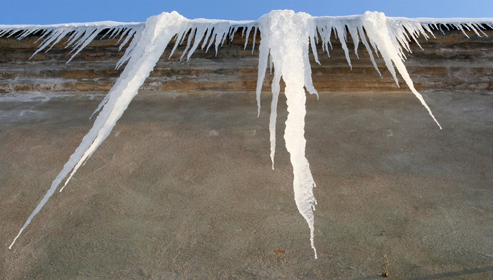 На головы ростовчан начали падать сосульки и спрессованный снег