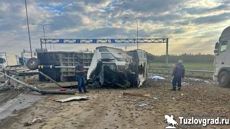 По предварительной информации, 40-летний водитель тягача FAWс полуприцепом, груженым щебнем, двигался по трассе М4 в сторону Ростова и в районе Яново-Грушевского не справился с управлением (по одним данным мужчина заснул за рулем, по другим – отвлекся). В результате этого тонар врезался в металлический отбойник слева от проезжей части, «намотал» около 30 метров его на себя и перевернулся. И во время этого он также ударил попутную фуру с тягачом «Скания».