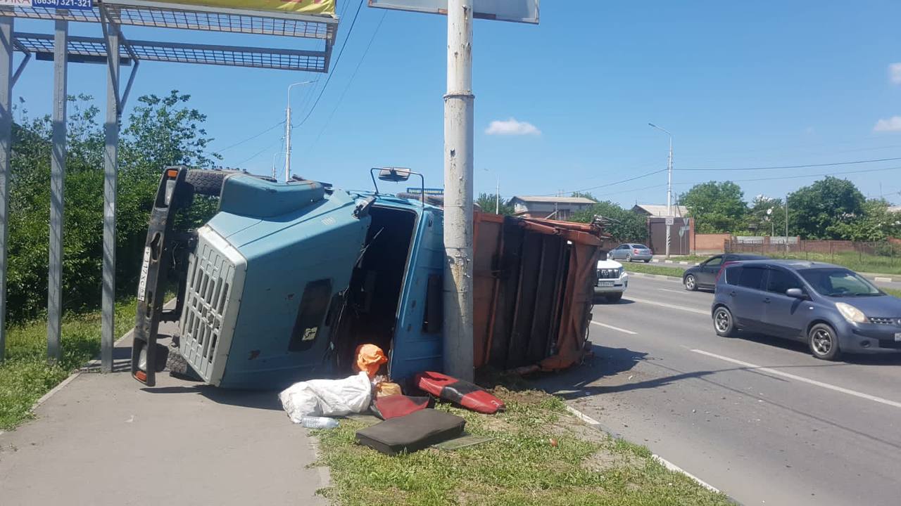 Вчера, 28 мая, в Ростовской области водитель мусоровоза не выбрал безопасную скорость движения и автомобиль перевернулся.