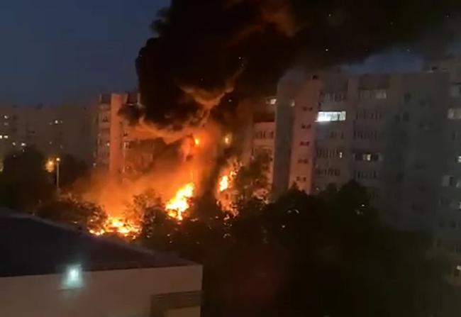 Другой житель города уточнил, что в этом жилом здании девять этажей. По словам очевидцев, дом горит с первого по девятый этаж