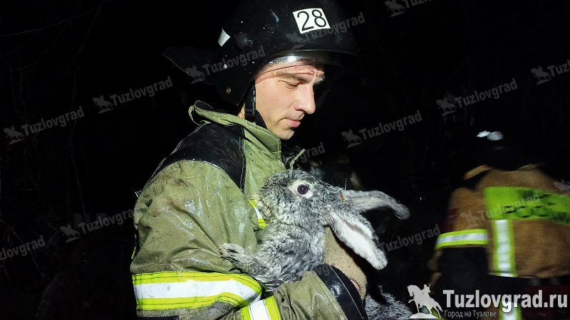 Как оказалось, в горящих сараях, заваленных разным хламом и сеном, находился еще и крольчатник. Пожарные после локализации пожара обнаружили там двух живых кроликов. Оба пушистика были спасены – они были так напуганы происходящим, что даже не сильно сопротивлялись «объятиям» мокрых и засыпанных сажей спасателей. К сожалению, хозяин подворья не сообщил пожарным, что внутри находятся живые кролики, иначе они бы зашли в крольчатник гораздо раньше и смогли бы спасти намного больше животных. Около десятка кроликов погибли, задохнувшись в дыму.