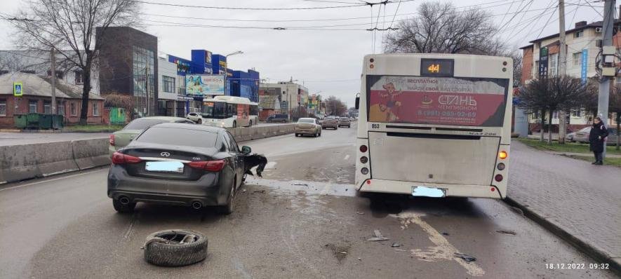 В автобус, следующим по маршруту № 44, врезалась иномарка. Дорожный инцидент произошёл утром воскресенья, 18 декабря, в Ростове на проспекте Стачки.