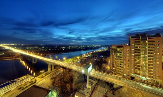 Высота Ворошиловского моста над рекой – порядка 31 метра.