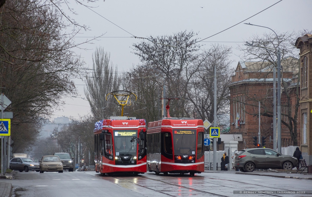 31 декабря таганрогские трамваи по всем маршрутам будут курсировать вплоть до наступления Нового года. Последний вагон 2022 года символично заедет в депо в 23:59. А 1 января на линии выйдут чуть меньше вагонов, чем обычно.