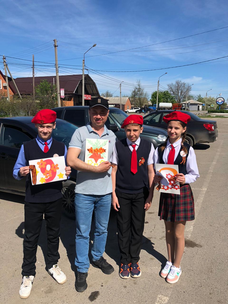 Юнармейцы школы ходили по микрорайону и вручали символ военной доблести и славы, а также поздравительные открытки, сделанные младшими учащимися.