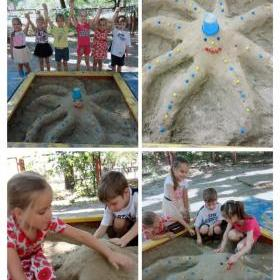 11 августа в детских садах города Таганрога прошёл День песочных скульптур «Песочные фантазии». Ребята с интересом приняли участие в конкурсе на лучшую композицию из песка: выкладывали песочно-каменные миниатюры, строили сказочные замки, башни, горы, дороги и туннели, лепили животных.