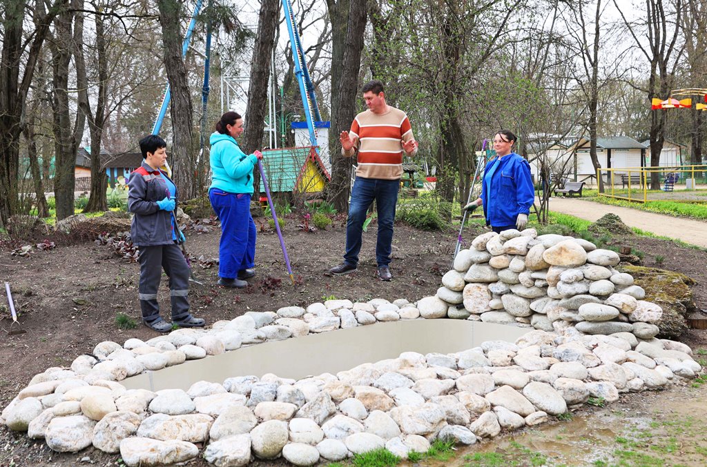 В районе аттракциона «Емеля» расположился небольшой симпатичный водоем, который окаймляет природный камень. Подобных в парке несколько. Виталий Стукотий поделился планами их отреставрировать и залить водой. Вот только запускать туда рыб или нет, еще не определились.
