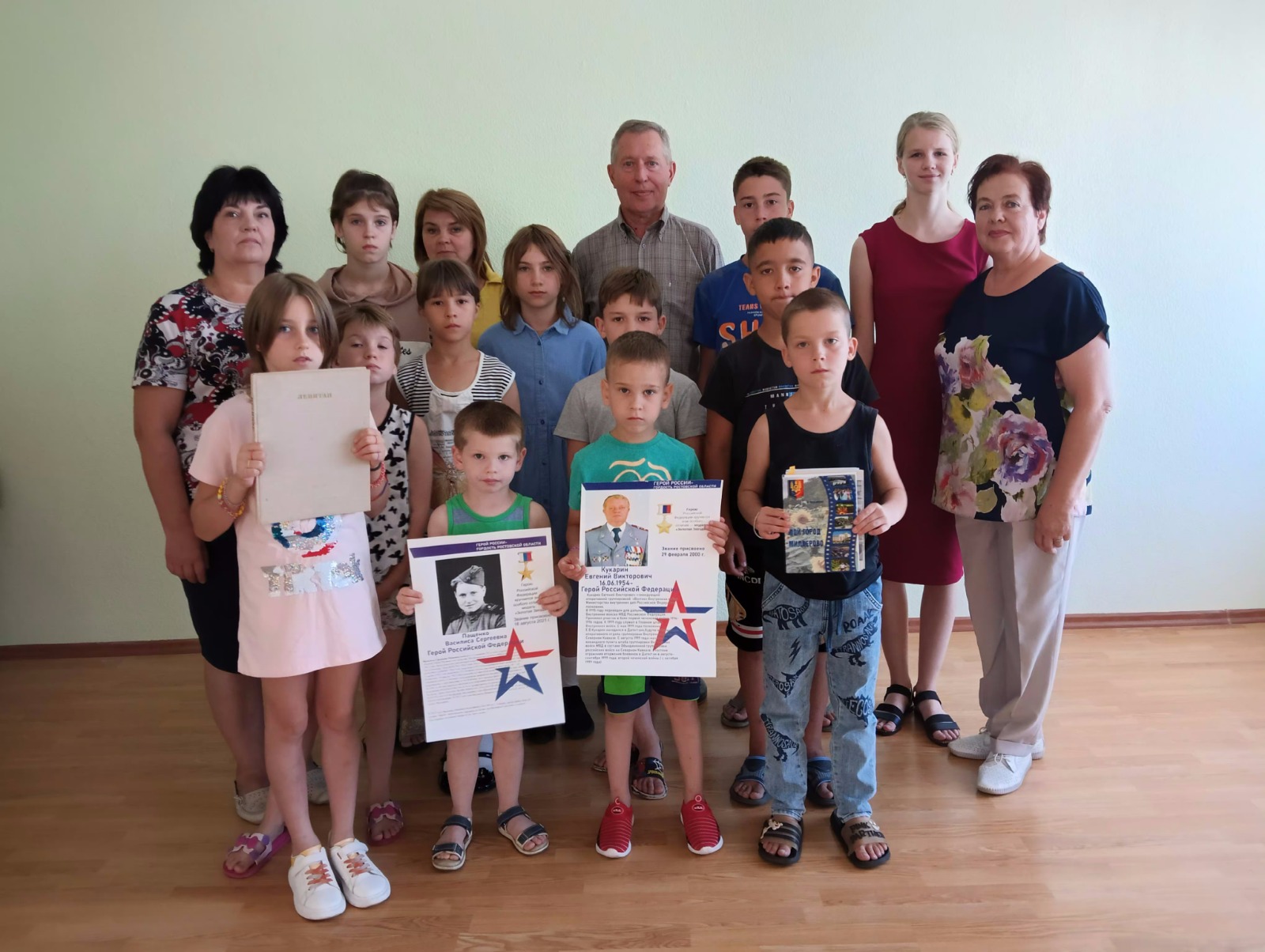 В наши дни этот почетный список дополнили наши земляки, которым присвоено звание Героя России. Об одном из них - Василисе Пащенко, ребятам рассказал Виктор Пащенко, её племянник. Воспитанники центра с большим удовольствием слушали рассказ, смотрели презентацию о жизни и подвиге своей землячки, имя которой носит школа номер четыре города Миллерово. А представленная библиотекой книга-выставка открыла детям имена авторов наших земляков, истории которых переданы на страницах.