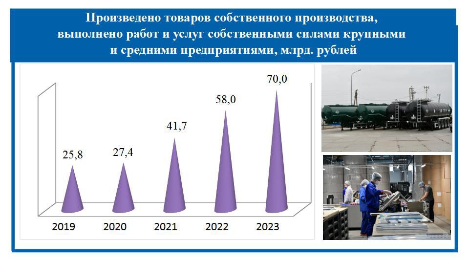 -С начала года крупные и средние промышленные предприятия произвели товаров и выполнили работ на сумму 70 млрд. рублей. Это на 20% больше, чем за аналогичный период прошлого года. При этом предприятия района получили на 35% больше прибыли по сравнению с прошлогодним уровнем.