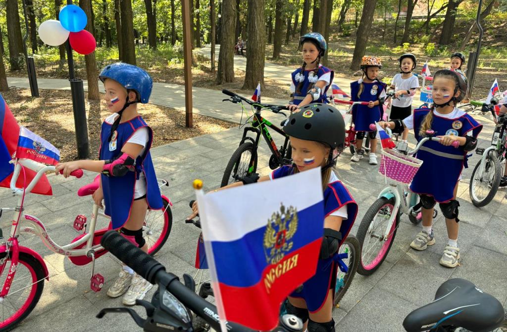 Велопробег в Таганроге: дети с российским триколором поздравили горожан