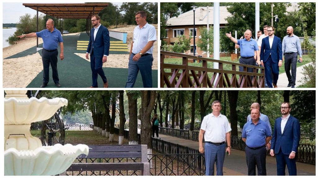 Целью визита министра стало знакомство с ходом работ по благоустройству объектов и общественных пространств в Усть-Донецком районе.