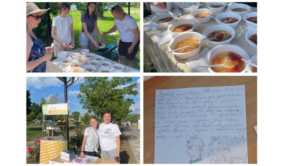 В течение вечерних мероприятий, проходящих в сквере "Юность" гости и жители поселка воспользовались возможностью отправить личные письма, а дети нарисовали рисунки нашим землякам, находящимся на фронте. Эти сердечные послания и искренние пожелания станут незаменимым источником поддержки. Также была возможность оказать материальную помощь, на приобретение самого необходимого для наших бойцов.