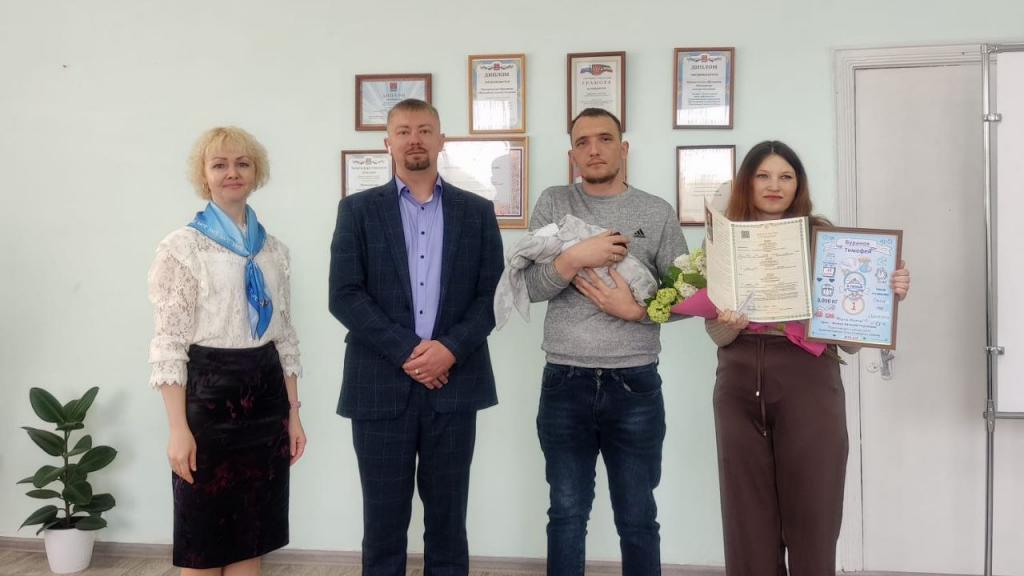 Торжественное вручение родителям свидетельства о рождении их сына и медали «Рожденный в Усть-Донецком районе» прошло в Администрации Мелиховского сельского поселения. С рождением ребенка семью Бурановых поздравил заместитель главы Администрации Мелиховского сельского поселения Константин Ломакин.