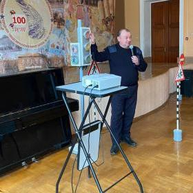 Ребята вместе с инспектором пропаганды ОГИБДД УМВД РФ по Таганрогу майором полиции Павлом Лебедем повторили правила дорожного движения для пешеходов, закрепили знания о сигналах светофора на регулируемых перекрёстках и отработали безопасный маршрут в школу.