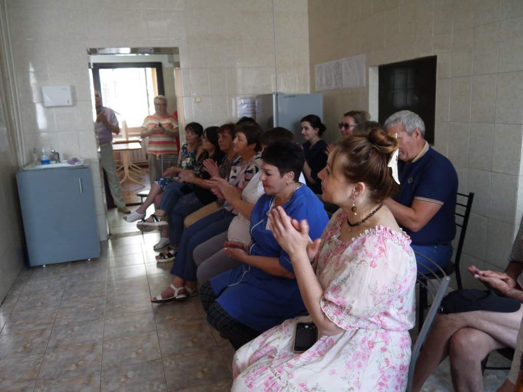 А потом была музыкальная часть с любимыми песнями сотрудников центра. Для них это оказалось совершенным сюрпризом. Исполнителям подпевали, от души аплодировали, на лицах слушателей расцветали улыбки. Сотрудники социального центра догадались, почему у них как бы невзначай спрашивали, какая песня им нравится.