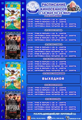 Ознакомиться с расписанием кинотеатра вы можете по ссылкам:
