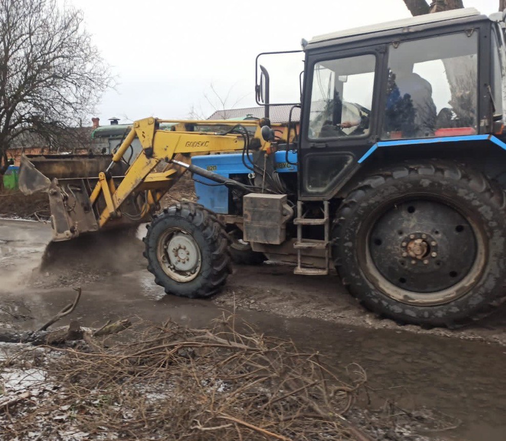 Сегодня асфальтобетонным ломом подсыпаются поврежденные участки дороги.