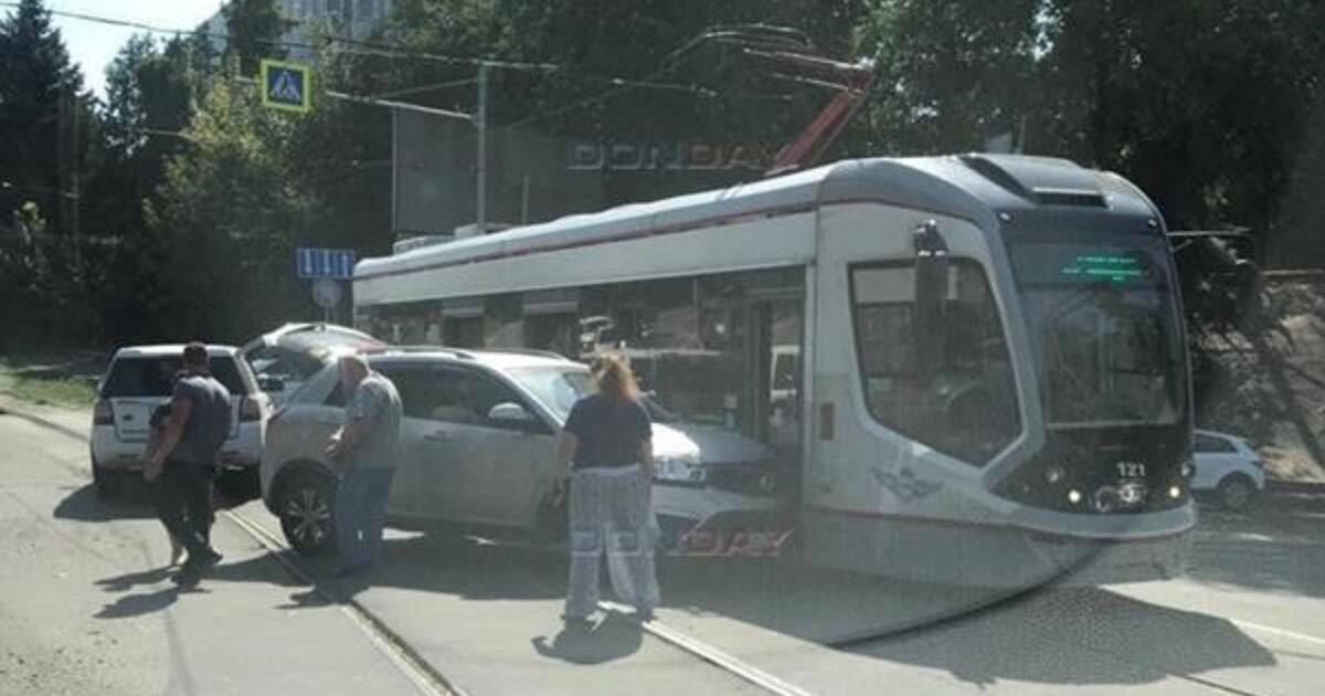 В центре Ростова SsangYong протаранил скоростной трамвай