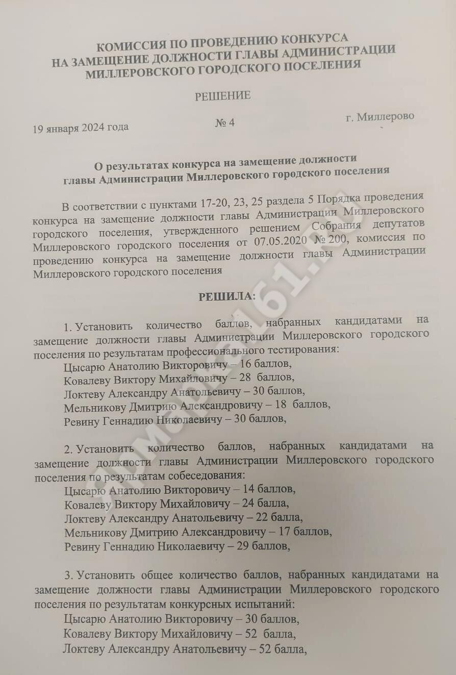 Это и.о. главы администрации Миллеровского городского поселения А.А. Локтев , ведущий специалист сельхозотдела администрации Миллеровского района Г.Н. Ревин и мастер водопроводных сетей МУП «МПО ЖКХ Миллеровского района» В.М. Ковалев. Кто из них станет главой администрации, решат депутаты Собрания депутатов Миллеровского городского поселения на заседании городской думы 30.01.24 г.