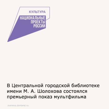 В Центральной городской библиотеке имени М. А. Шолохова состоялась премьера мультфильма «Зайчик и рябина». Премьера была приурочена к Международному дню анимации. Присутствующие познакомились с историей праздника, узнали историю появления мультфильмов, услышали рассказ о современной мультипликации, а также о том, как создаются мультфильмы в наше время.