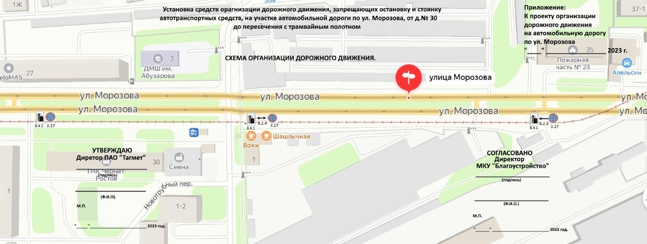 С 29 августа изменится схема организации дорожного движения на улица Морозова. От дома № 30 до пересечения с трамвайным полотном будут установлены знаки, запрещающие остановку и стоянку грузовых автомобилей.