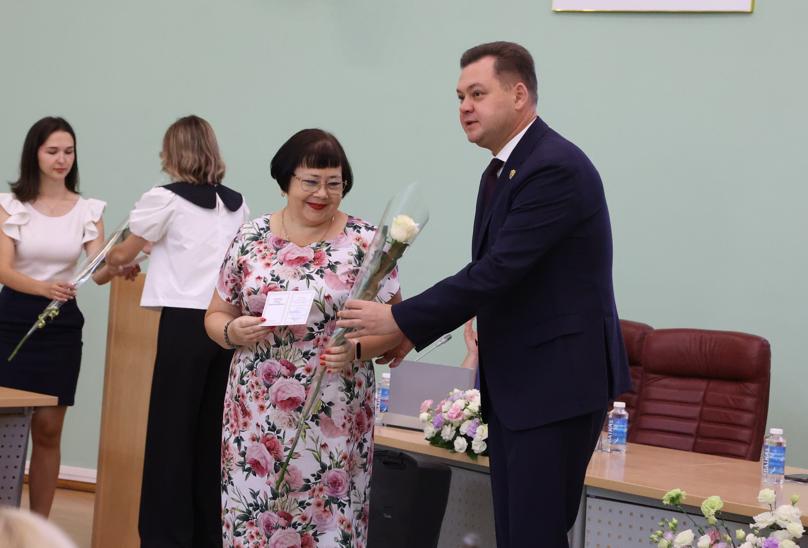 Глава администрации вручил знаки отличия Министерства просвещения РФ «Отличник просвещения» педагогам из нескольких городских школ.
