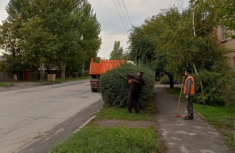 В Таганроге сотрудники коммунальных служб продолжают покос травы и обрезку живых изгородей на улицах города.