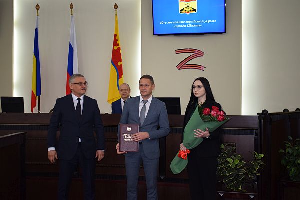 Председатель городской думы – глава города Шахты Андрей Горцевской вручил Почетную грамоту директору департамента по физическому развитию и спорту администрации г.Шахты Валентину Стрелкову. Также её были удостоены Шахтинские спортсмены Эдуард Маркарян и Павел Кондрашов , но, к сожалению, их не было на заседании Думы.