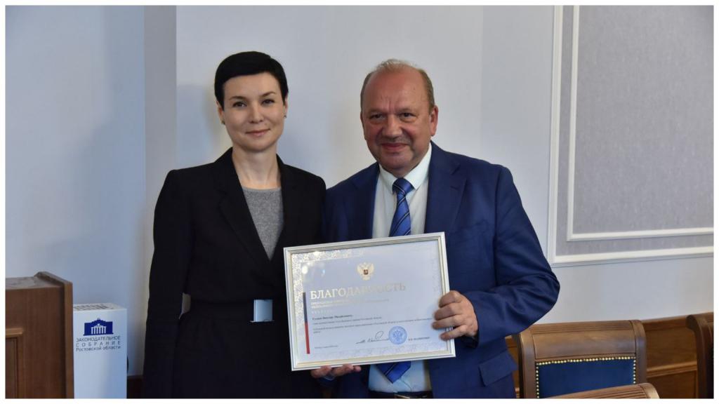 За большой вклад в развитие местного самоуправления в Ростовской области и многолетнюю добросовестную работу главе Администрации Усть-Донецкого района Виктору Гуснай вручили Благодарность Председателя Совета Федерации Федерального Собрания РФ.