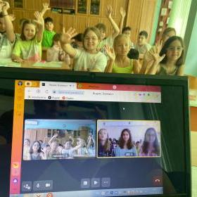 Активисты РДДМ «Движение Первых» и педагоги школы № 37 города Таганрога организовали и провели в пришкольном лагере телемост с учащимися и учителями школы № 282 Санкт-Петербурга.