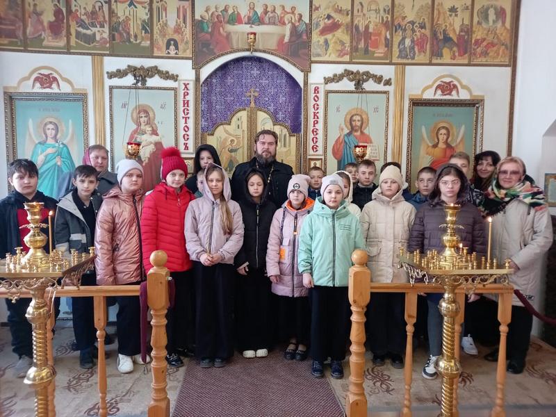 Затем батюшка пригласил школьников в храм, где провёл для них экскурсию, рассказал о жизни храма.