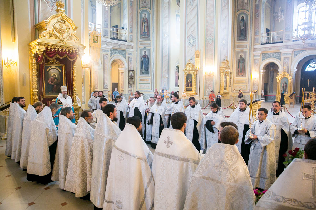 Его Высокопреосвященству сослужили настоятель собора иерей Леонтий Дмитриев, руководитель Информационного отдела Ростовской-на-Дону епархии протоиерей Даниил Азизов, секретарь Епархиального управления Ростовской-на-Дону епархии иерей Димитрий Болотаев, исполняющий обязанности наместника Донского Старочеркасского Ефремовского мужского монастыря иеромонах Сергий (Коломиц), благочинный приходов Матвеево-Курганского округа иерей Евгений Фомин, клирики епархии.