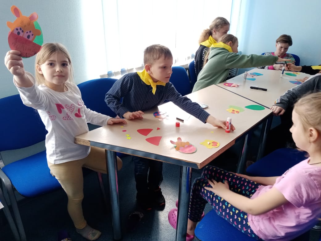 К празднику Святой Пасхи волонтёры книжной культуры, их родители и сотрудники Детской библиотеки им. А.Чехова МБУК ЦБС г. Азова организовали настоящую мастерскую для детей из ДНР в пункте временного размещения гостиницы «Солнечная» г. Азова. Мастер-класс «Пасхальный сувенир» объединил всех любителей творчества – у каждого участника мероприятия получилась яркая, веселая и праздничная поделка-аппликация из цветной бумаги, выполненная своими руками.