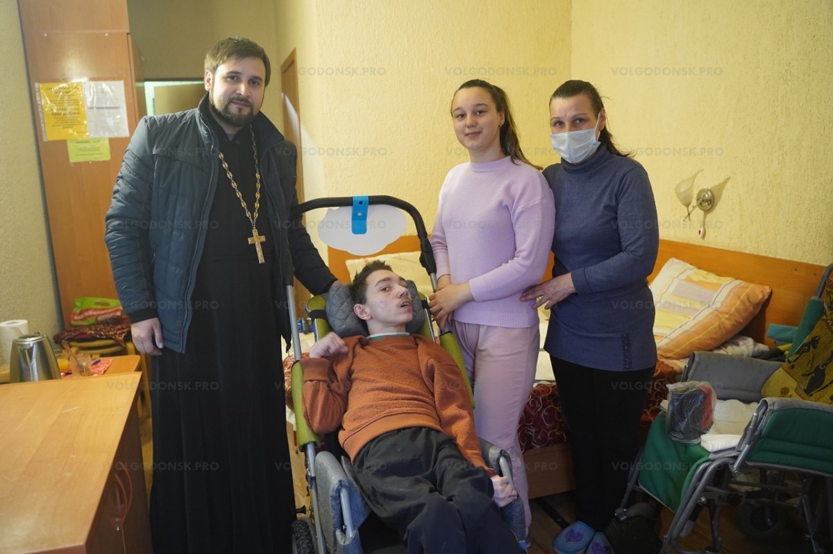 На часть средств, пожертвованных неравнодушными прихожанами православных храмов на нужды беженцев из Донбасса, Волгодонская епархия приобрела специальную инвалидную коляску для юного беженца Богдана с тяжёлой формой ДЦП.