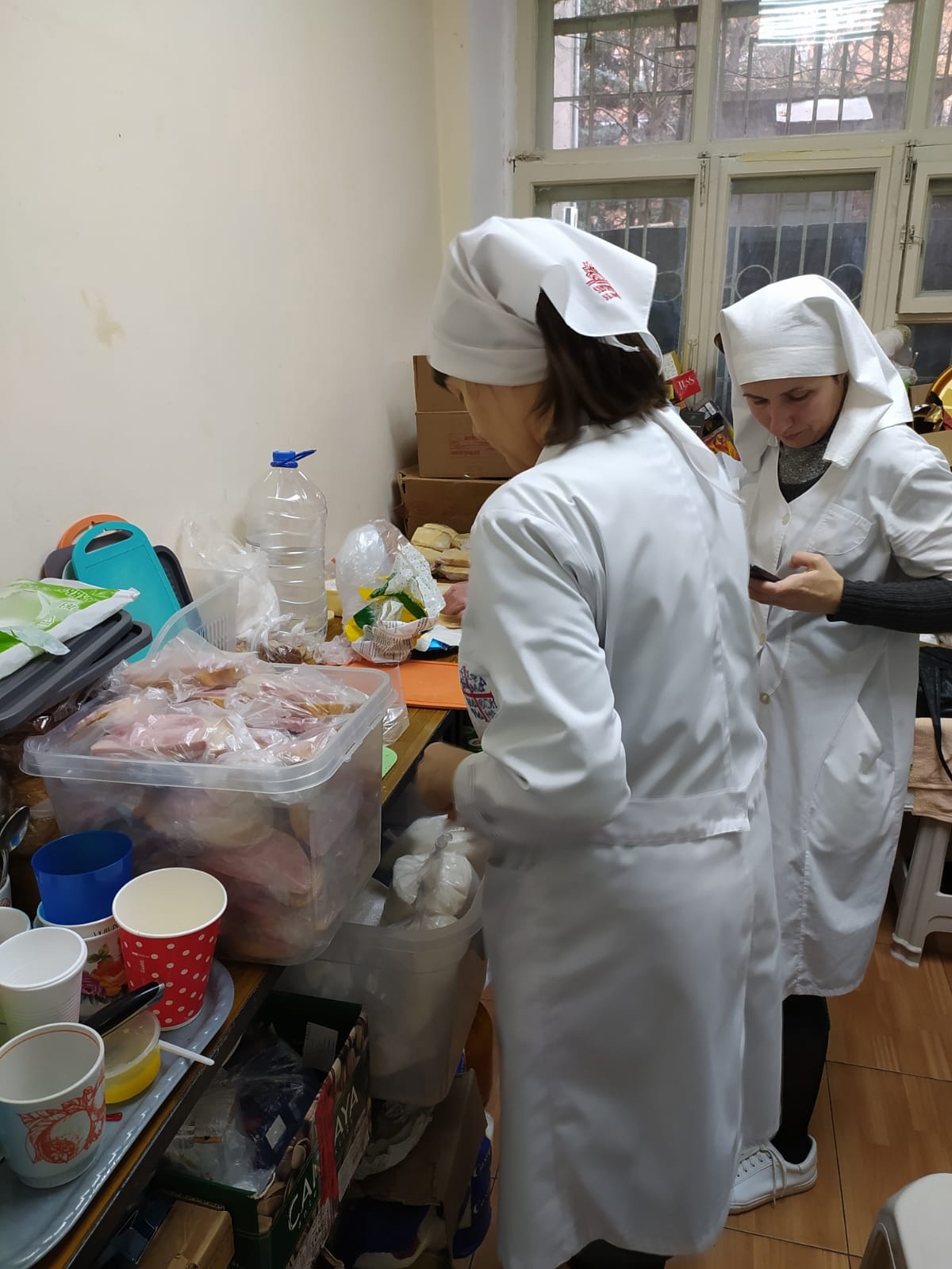 Наши сёстры милосердия регулярно посещают Окружной военный госпиталь и передают гуманитарную помощь, собранную силами прихожан.