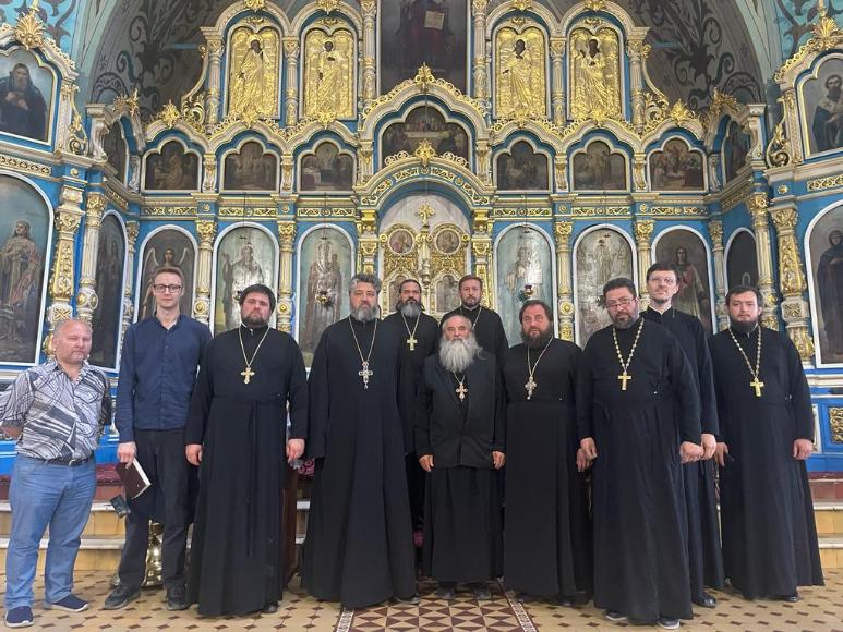 В рабочей встрече приняли участие председатель комиссии протоиерей Валерий Волощук, заместитель председателя, руководитель иконописного отделения Донской духовной семинарии иерей Александр Литвиненко, настоятель Патриаршего Вознесенского войскового всеказачьего собора города Новочеркасска протоиерей Георгий Сморкалов, древлехранитель Ростовской-на-Дону епархии иеромонах Маврикий (Звягинцев), староста Ростовского кафедрального собора Рождества Пресвятой Богородицы Петр Колобаев, руководитель архитектурно-строительного отдела Ростовской-на-Дону епархии, епархиальный архитектор Роман Фоменко, архитектор архитектурно-строительного отдела, представитель Волгодонской епархии в комиссии иерей Ростислав Сагинашвили, благочинный Азовского районного округа иерей Николай Чапкий, настоятель Преображенского храма хутора Обуховка протоиерей Николай Дяур и другие приглашенные лица.