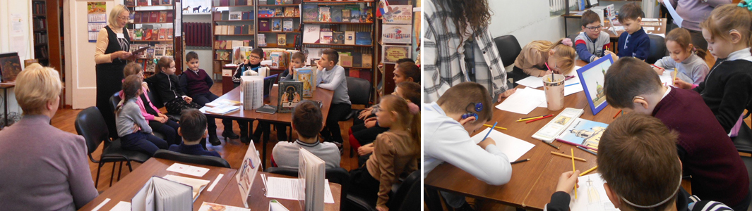 «Святые купола Таганрога» - мероприятие с таким названием прошло в библиотеке - филиал № 9 (Свободы, 29) в рамках проекта «Узнай мир с библиотекой». Учащимся младшего школьного возраста Таганрогской школы № 1 для глухих и слабослышащих библиотекарь Т. В. Чуприна в доступной форме с использованием богато иллюстрированного краеведческого материала предложила совершить экскурс в историю таганрогских христианских храмов и церквей, как утраченных, так и существующих в настоящее время. Эта тема актуальна и в рамках проводимого Года культурного наследия и нематериальных ценностей народов России. Также ребята узнали о святом Павле Таганрогском, его духовной жизни. От участников встречи наша библиотека получила в подарок картину с изображением Успенского собора, к сожалению, уже утраченного.