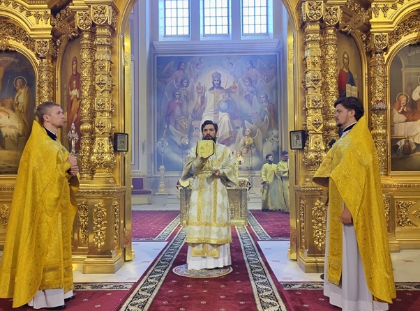 Его Преосвященству сослужили настоятель собора иерей Леонтий Дмитриев и клирик собора иерей Александр Слабодин. Диаконский чин возглавил диакон Сергий Осяк.