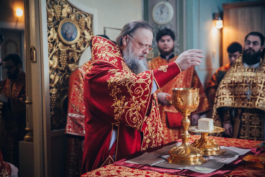 На сугубой ектении была вознесена молитва о Святой Руси. Проповедь перед Святым Причастием произнес иеромонах Сергий (Коломиц).
