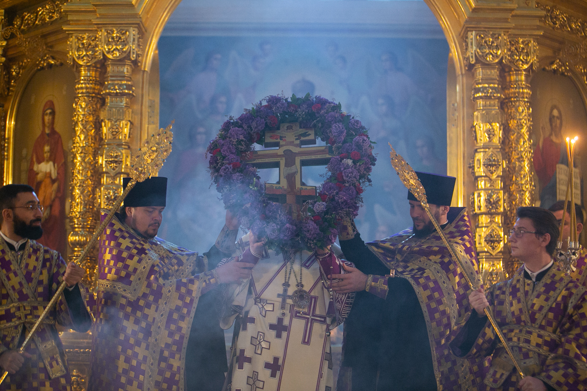 На утрене после великого славословия Глава Донской митрополии митрополит Ростовский и Новочеркасский Меркурий изнес Крест в центр соборного храма. Затем было совершено поклонение Кресту по чину Крестопоклонной Недели.