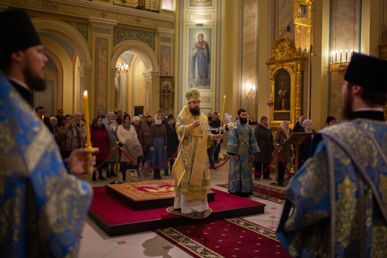 В канун празднования Введения во храм Пресвятой Богородицы епископ Таганрогский Артемий совершил всенощное бдение в Ростовском кафедральном соборе