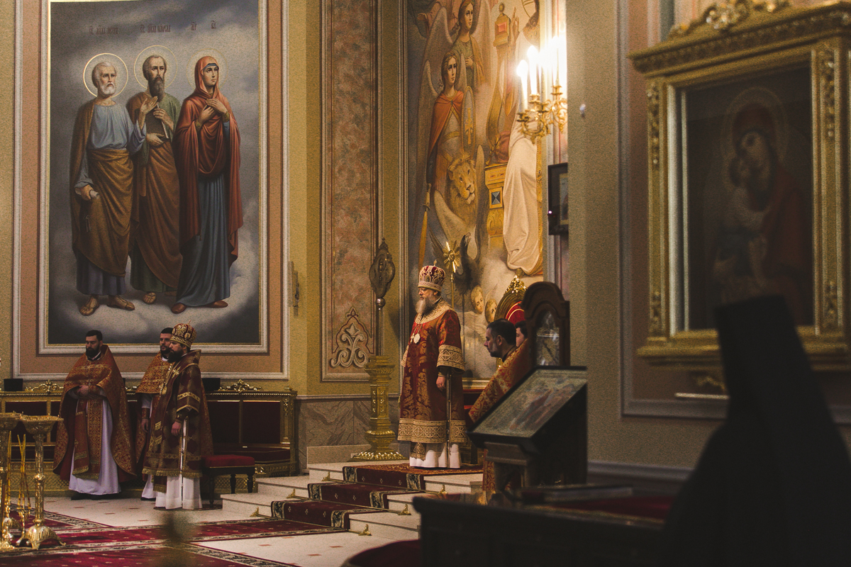 Его Высокопреосвященству сослужили викарий Ростовской епархии епископ Таганрогский Артемий, настоятель собора иерей Леонтий Дмитриев, секретарь Епархиального управления Ростовской-на-Дону епархии иерей Димитрий Болотаев и клирики собора.