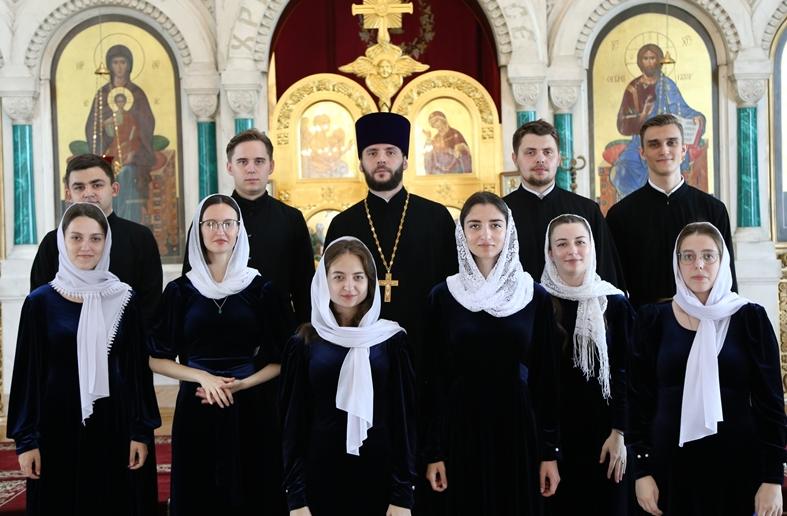 Песнопения Божественной литургии исполнил женский хор воспитанниц Регентско-певческого отделения под управлением Литвиновой Евгении.