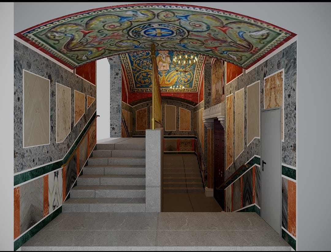 Представляем промежуточные этапы работы над входной группой в нижний храм Сорока мучеников Севастийских. Одна из мозаик будет установлена снаружи на фасаде. Потолочные элементы станут частью композиции входа в храм. На эскизе можно увидеть как это будет выглядеть, когда работы завершатся.