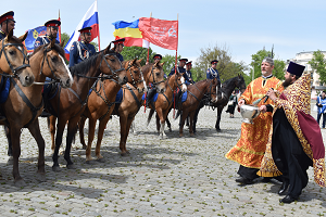 По окончании молебна протоиерей Георгий окропил сводный отряд конников, которые примут участие в переходе, святой водой, призвав на них благодать Духа Святого.