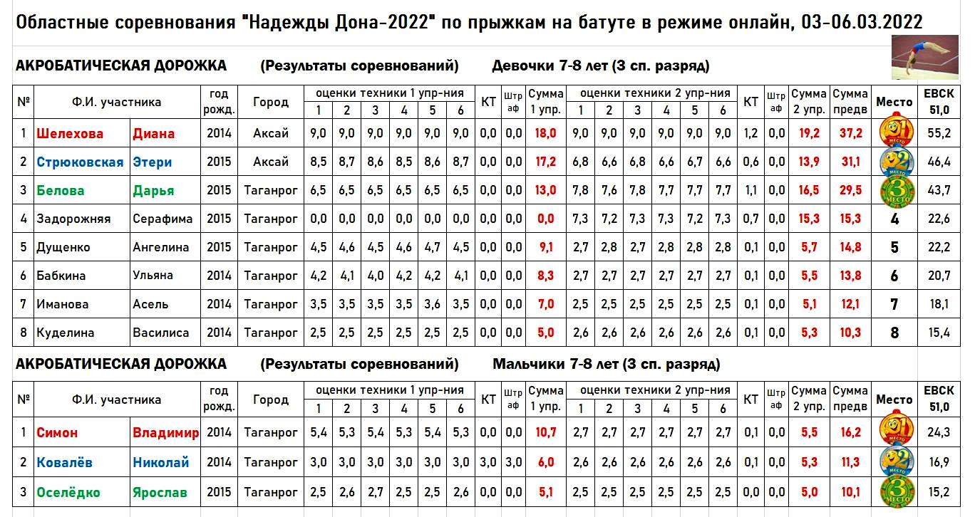 Протоколы: Акробатическая дорожка, «Надежды Дона-2022» (мальчики и девочки 7-8 лет)