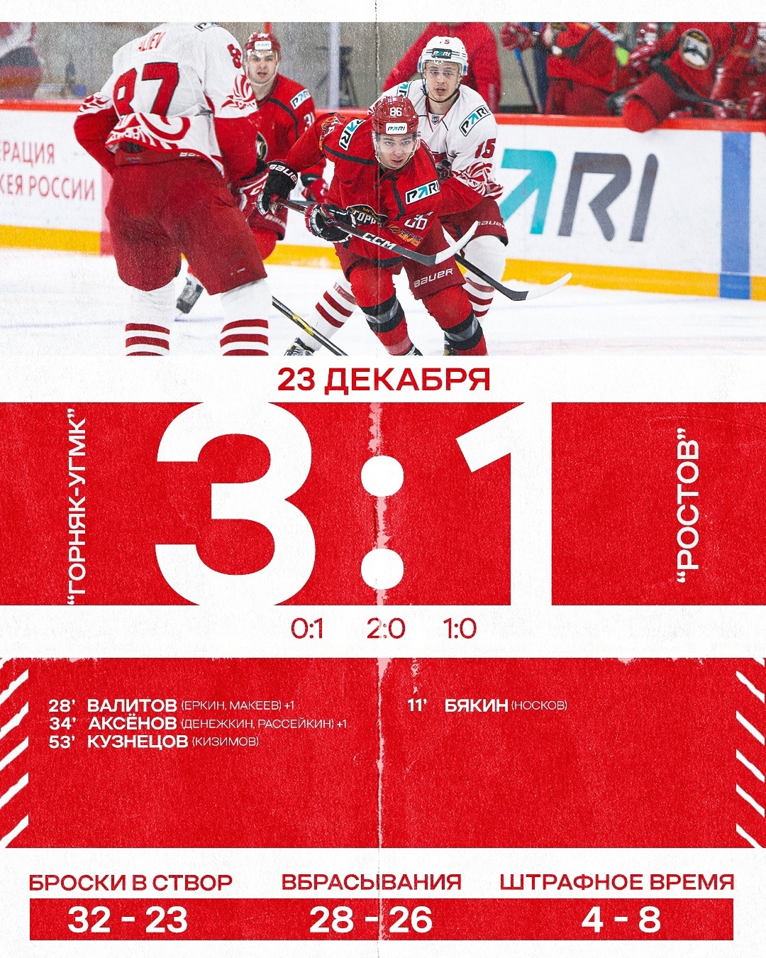 ХК «Ростов» — ХК «Горняк-УГМК» 3:1 (0:1, 2:0, 1:0)