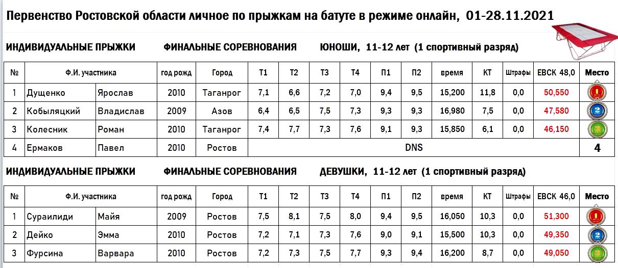 ИТОГИ ФИНАЛОВ ПЕРВЕНСТВА РОСТОВСКОЙ ОБЛАСТИ В ИНДИВИДУАЛЬНЫХ ПРЫЖКАХ НА БАТУТЕ (11-12, 13-14, 15-16 ЛЕТ)