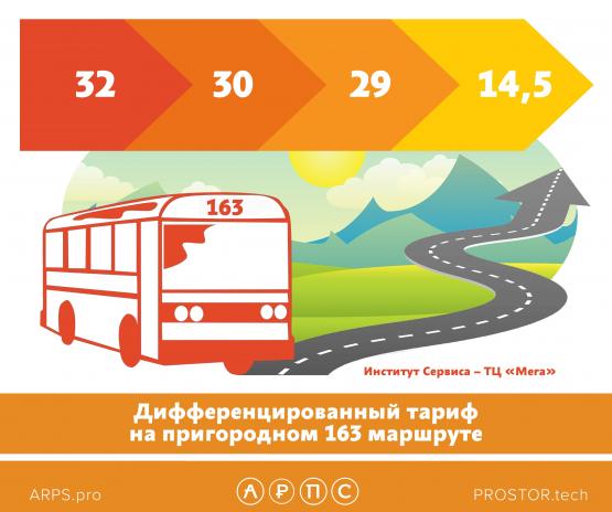 От 14,5 до 32 рублей С 23 июля на пригородом маршруте №163 («Институт Сервиса – ТЦ «Мега»») в Ростове начинают действовать дифференцированные тарифы на проезд, сообщает «Агентство развития платежных систем».